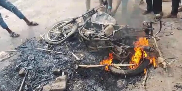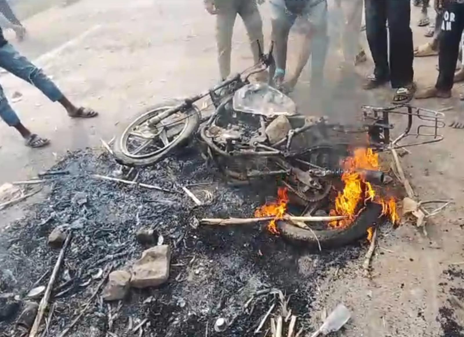 अवैध शराब का ज़हर, प्रशासन की चुप्पी और जनता का उबाल: ग्राम रेहतफल में शराब सहित बाइक जली